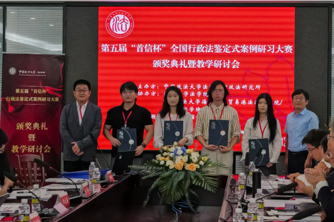 在随后的颁奖环节中,来自中国政法大学、中国人民大学、中南财经政法大学、中央民族大学、云南大学、西北政法大学、上海师范大学、西北大学等高校的十位获奖学生依次上台领奖。中国政法大学教务处处长罗智敏教授、法学院党委书记王文英、海南大学法学院副院长汪再祥副教授和首信律师事务所徐彬主任一起为获奖学生颁发荣誉证书,并鼓励青年学子持续在行政法领域深耕、创新。